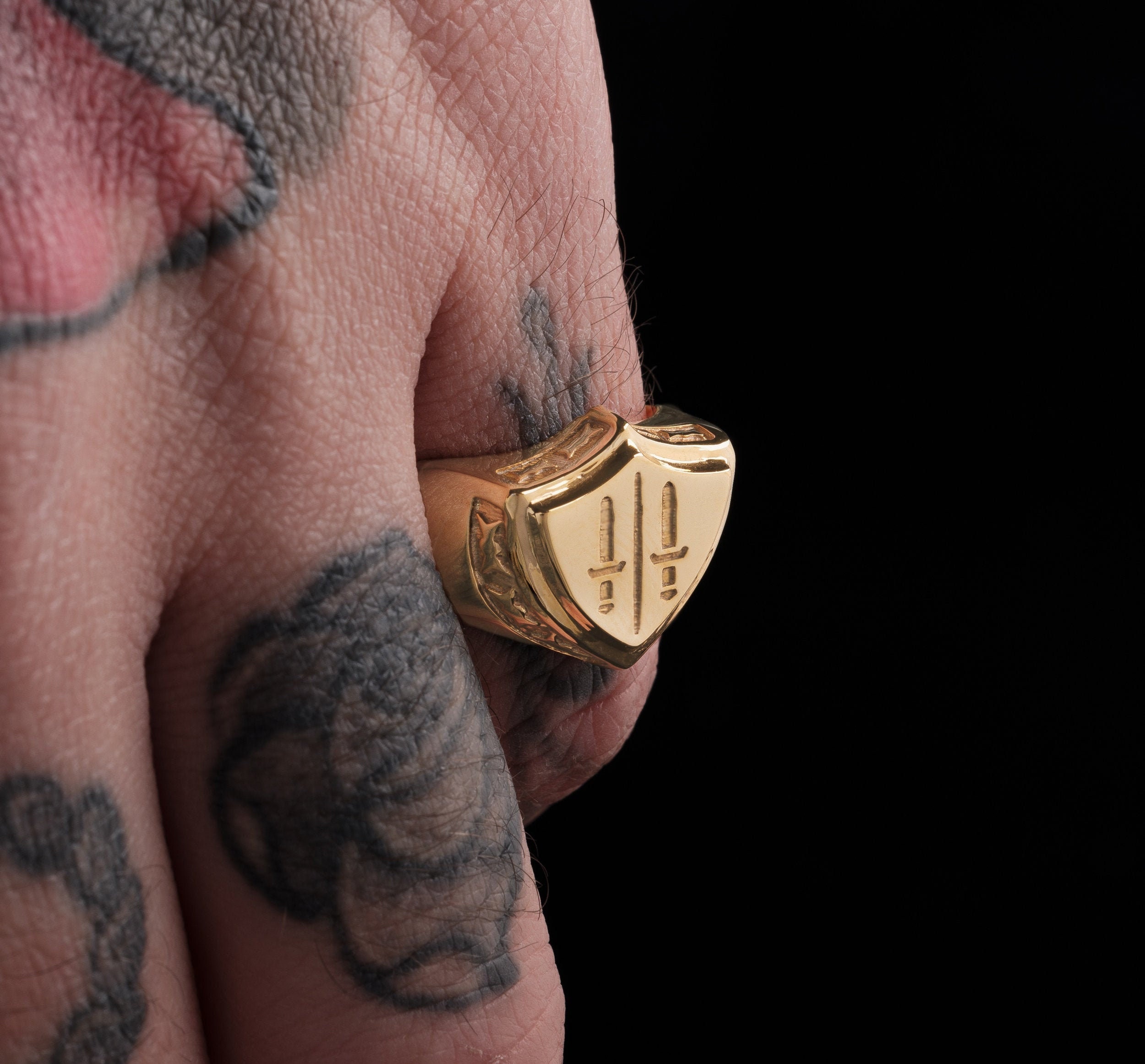 Mens Gold Plated Signet Rings For Men Shield Ring Pinky 925k Etsy Uk